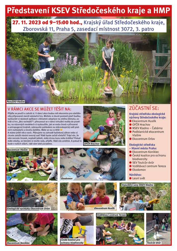 V pondělí 27. 11. 2023 od 9 do 15 hod. se v zasedací místnosti 3072 krajského úřadu představí krajská střediska ekologické výchovy Středočeského kraje a ekologická střediska hlavního města Prahy a dorazí také návštěva z Hradce Králové