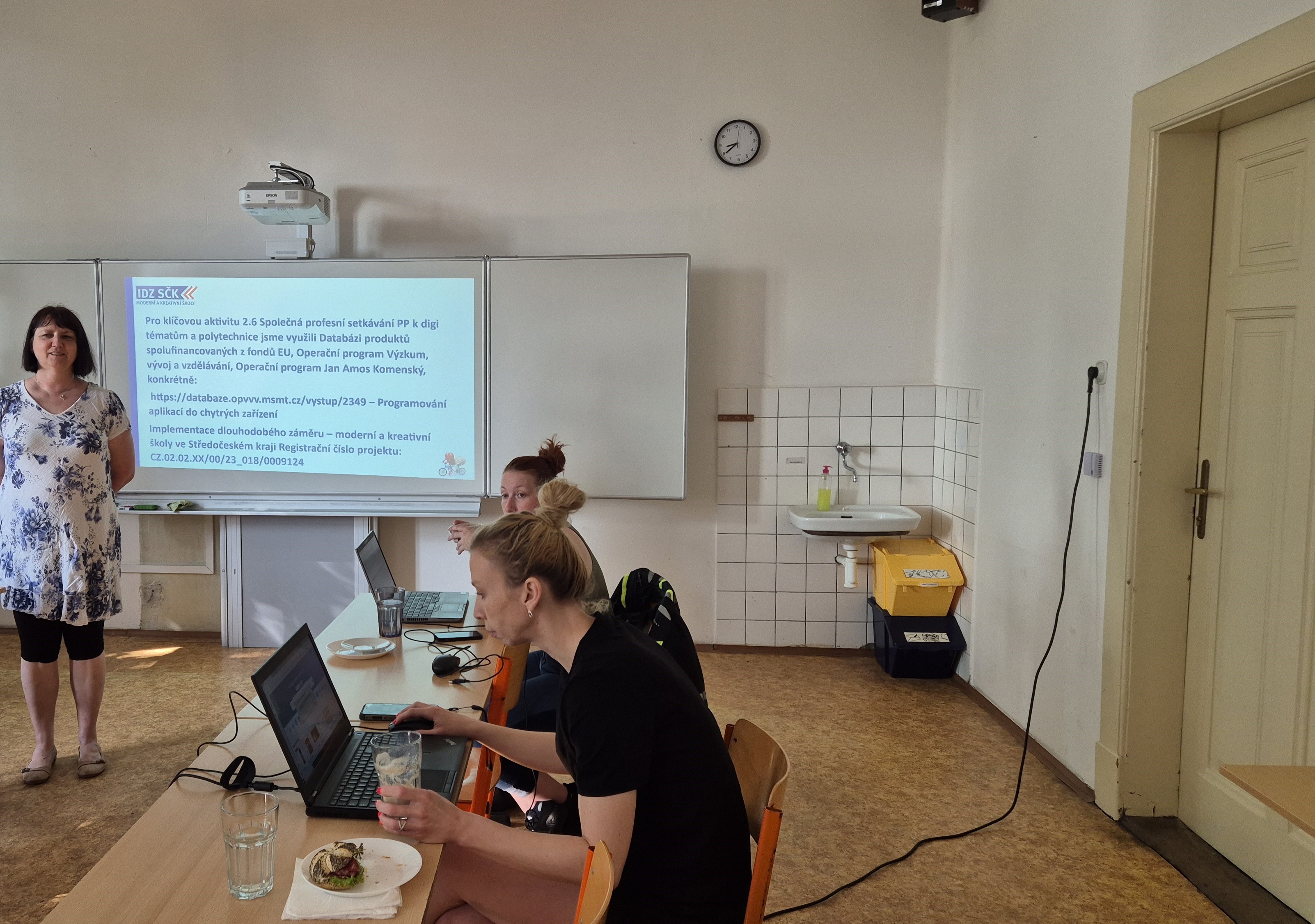 Páté a zatím poslední setkání navštívili pedagogové 4. června, tedy těsně před prázdninami. Cílem této akce bylo pedagogy seznámit s aplikací Meshy. Účastníci se zaměřili na tvorbu 3D modelů z fotografií, pracovali s obrázky a využívali umělou inteligenci.