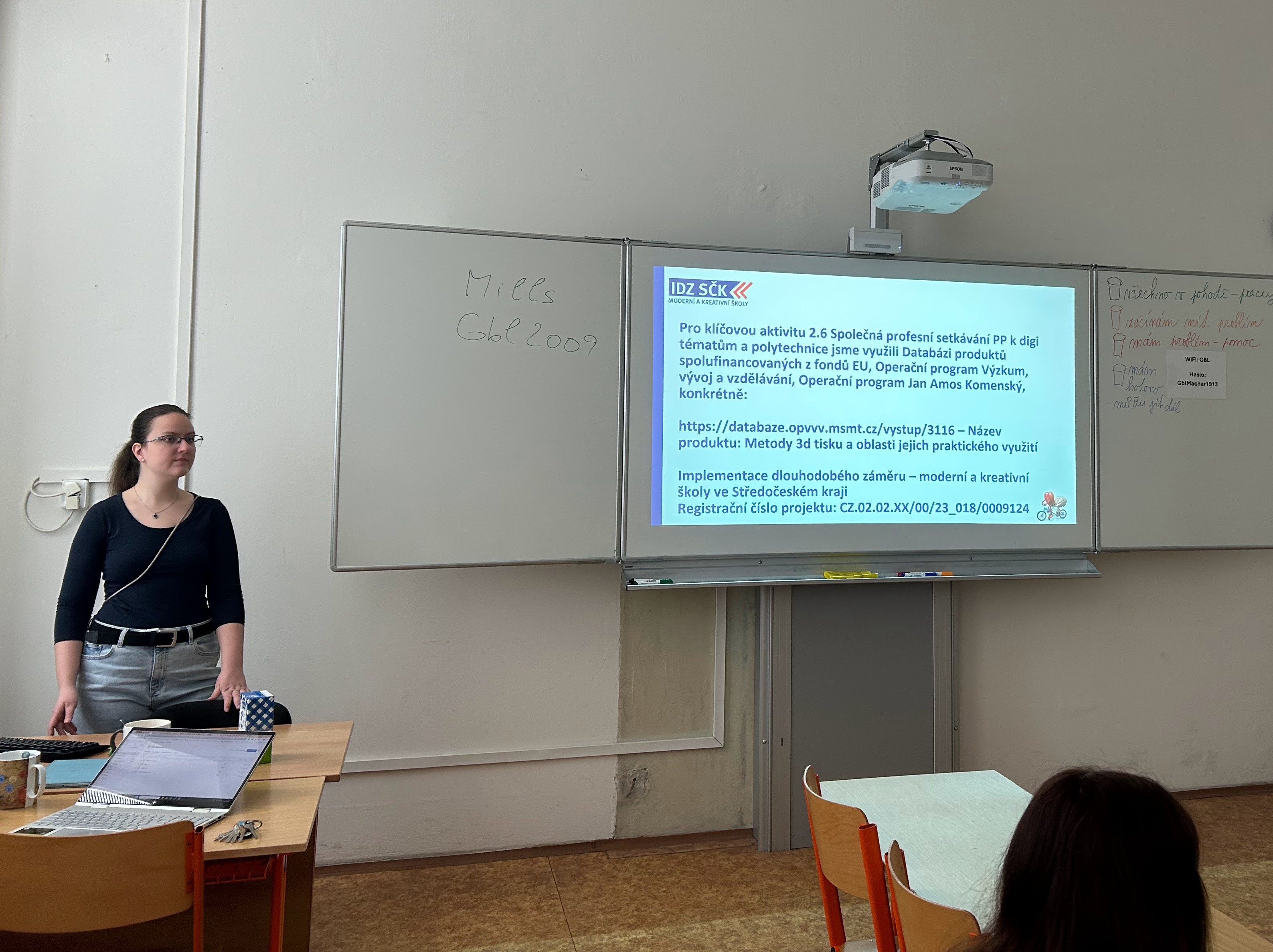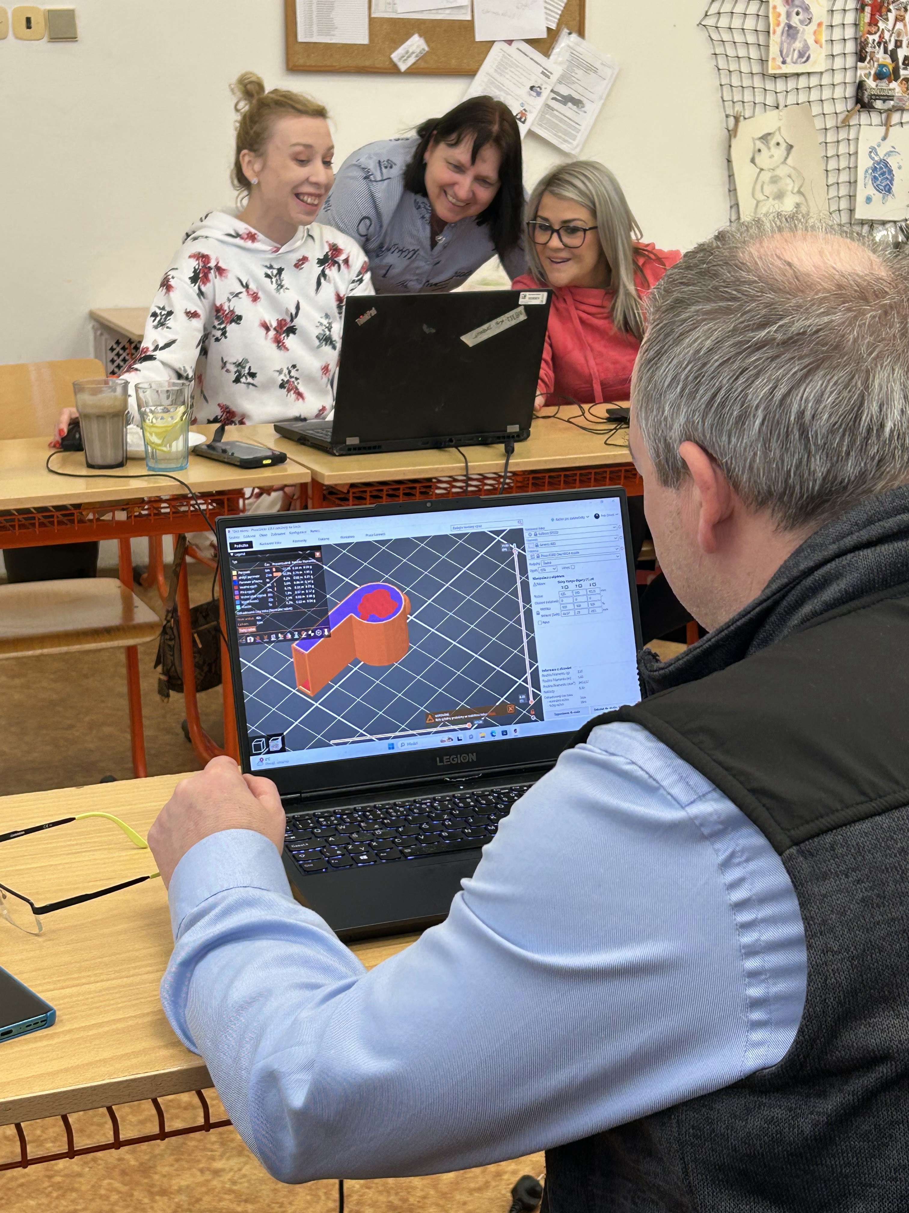 Jak držet krok s moderní dobou? To je název série celkem osmi setkání zaměřených na aktuální témata v rámci moderních technologií, jako jsou například 3D grafika, 3D modelování, 3D tisk, řezací plotter, dostupné stavebnice pro polytechniku a další možnosti, Canva, AI, video a animace (střih videa, filmové triky, výroba animovaného klipu, Scratch), ale také digitální gramotnost napříč předměty.