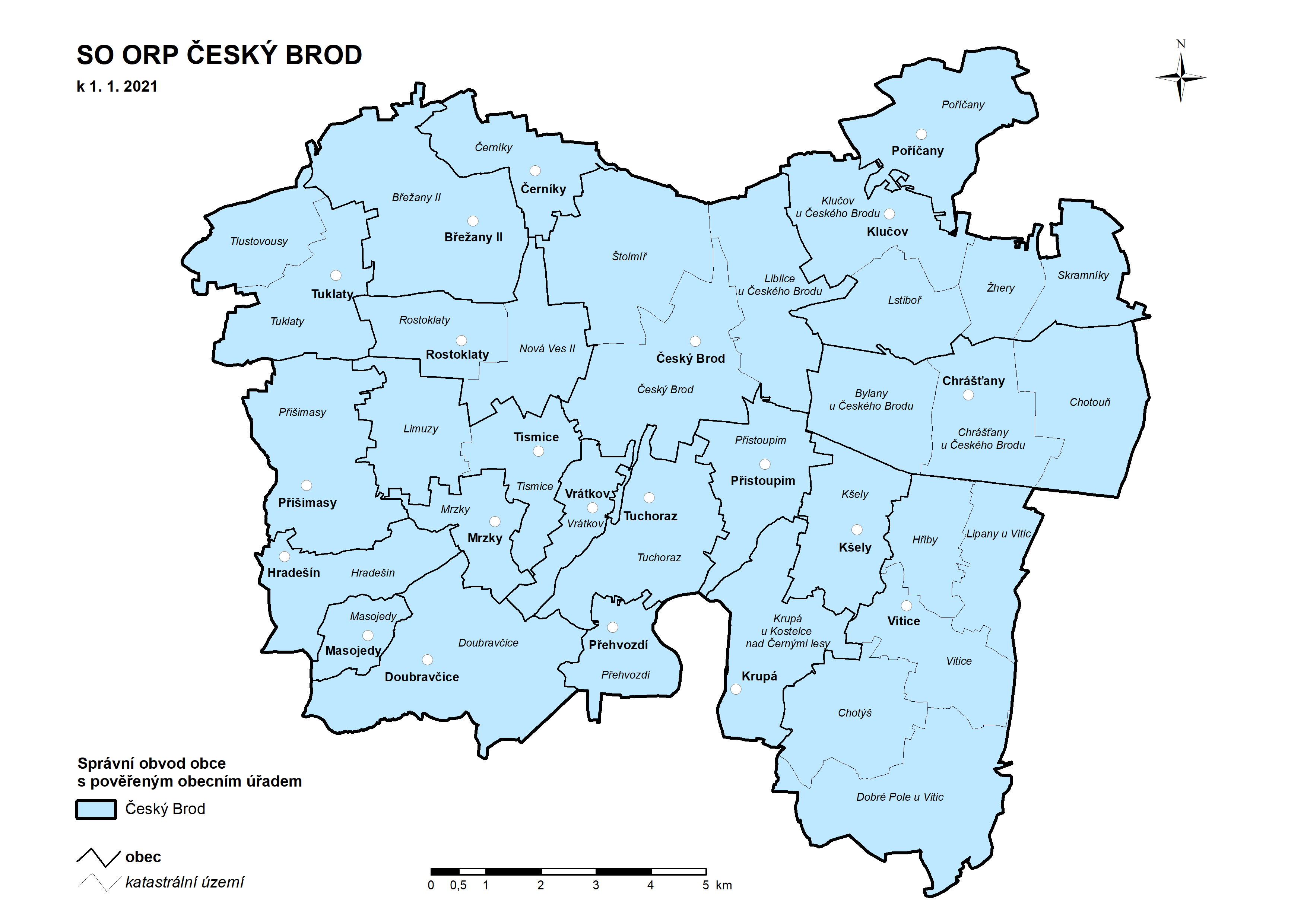 Správní obvod obce s rozšířenou působností Český Brod je vymezen územím obcí: