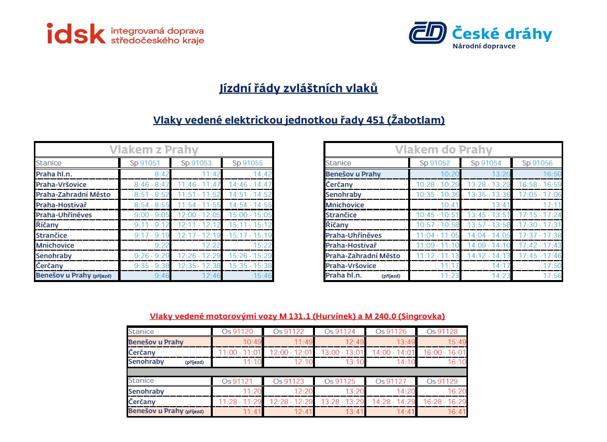- Historický motorový vůz M 131.1 (Hurvínek) a M 240.1 (Singrovka) – jízdy zvláštními vlaky na trati Benešov u Prahy – Senohraby a zpět.