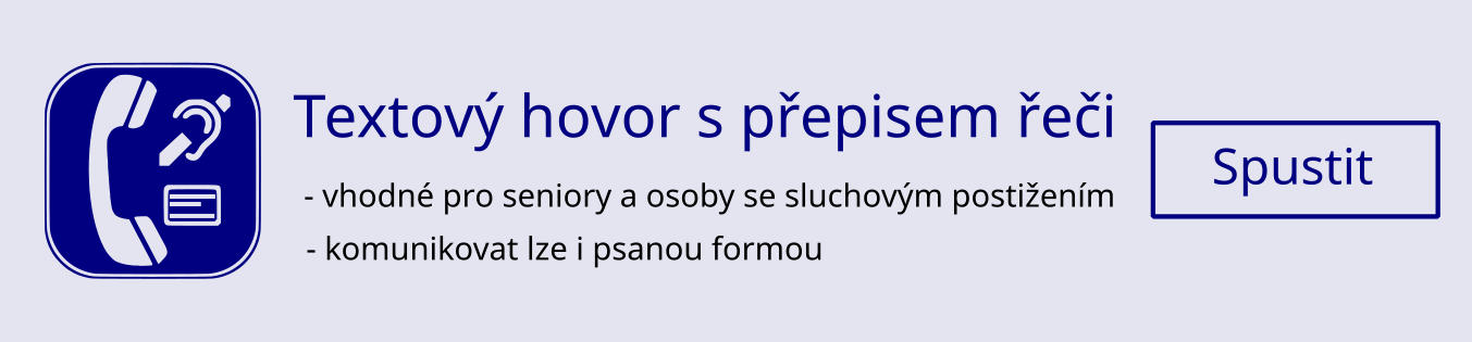 Textový hovor slouží pro telefonické spojení s krajským úřadem Středočeského kraje. Veškerá řeč našeho operátora je zároveň převáděna do textové podoby. Služba je vhodná zejména pro osoby se zhoršenou kvalitou sluchu, seniory či cizince, kteří preferují psanou formu komunikace. Máte tak vždy stoprocentní jistotu, že porozumíte všemu, co Vám říkáme.