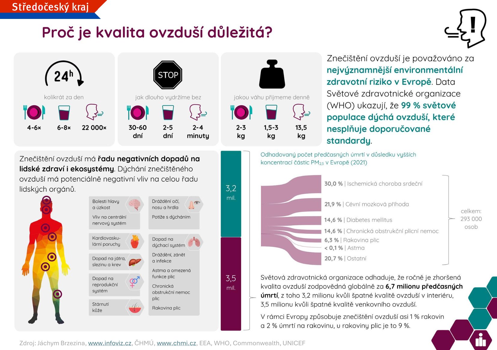 Kvalita ovzduší není jen otázkou zdraví. Znečištění ovlivňuje i přírodu – ničí vegetaci, snižuje úrodnost půdy a ohrožuje biodiverzitu. Navíc má ekonomické dopady, kterými jsou vyšší náklady na zdravotní péči. Čistý vzduch tedy není luxus, ale investice do budoucnosti.