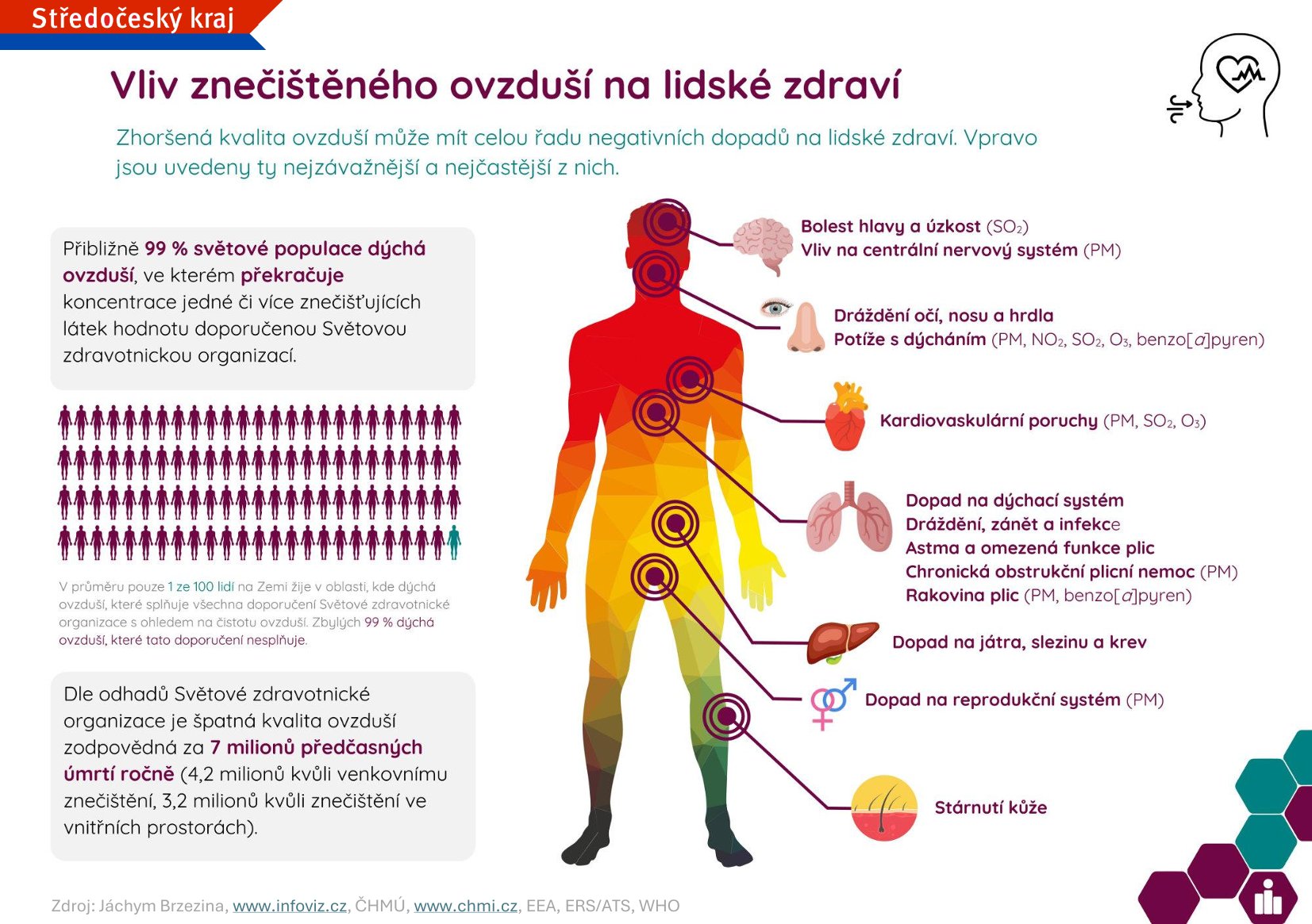 Znečištěné ovzduší není jen problém velkých měst. Znečišťující látky, především pak jemné prachové částice, se dostávají do našich plic i v menších obcích. Tyto látky mohou způsobovat respirační potíže, zhoršovat astma, zvyšovat riziko srdečních onemocnění, a dokonce ovlivňovat naši imunitu. Podle studií Světové zdravotnické organizace je špatná kvalita ovzduší jedním z největších zdravotních rizik současnosti.