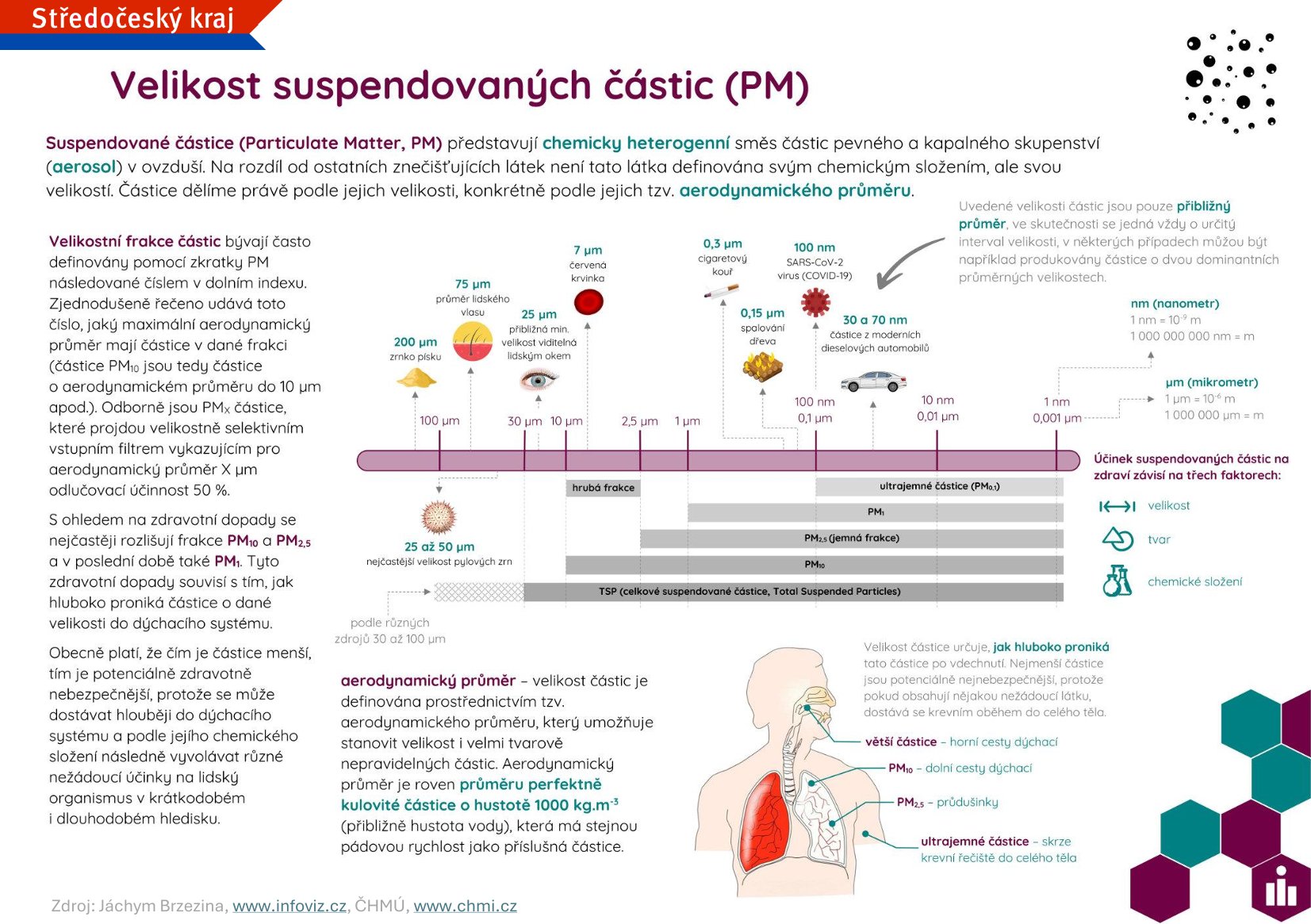Lokální topeniště (domácí kotle, kamna, krby) mají na kvalitu ovzduší v České republice zásadní vliv. Spalování pevných paliv (uhlí, dřevo) v nevyhovujících kotlích produkuje mnohonásobně více škodlivin než velké zdroje znečišťování. Na drobné částice se vážou různé toxické látky, často s karcinogenními a mutagenními účinky, zejména pak benzo(a)pyren. Polétavý prach, označující se zkratkou PM (z anglického sousloví particulate matter), značí velikost částic v mikrometrech, takže PM10 znamená skupinu částic menších než 10 mikrometrů. Čím jsou částečky prachu menší, tím déle zůstávají zvířené v ovzduší a tím hlouběji pronikají do plic (částice menší než 1 μm mohou vstupovat přímo do plicních sklípků).